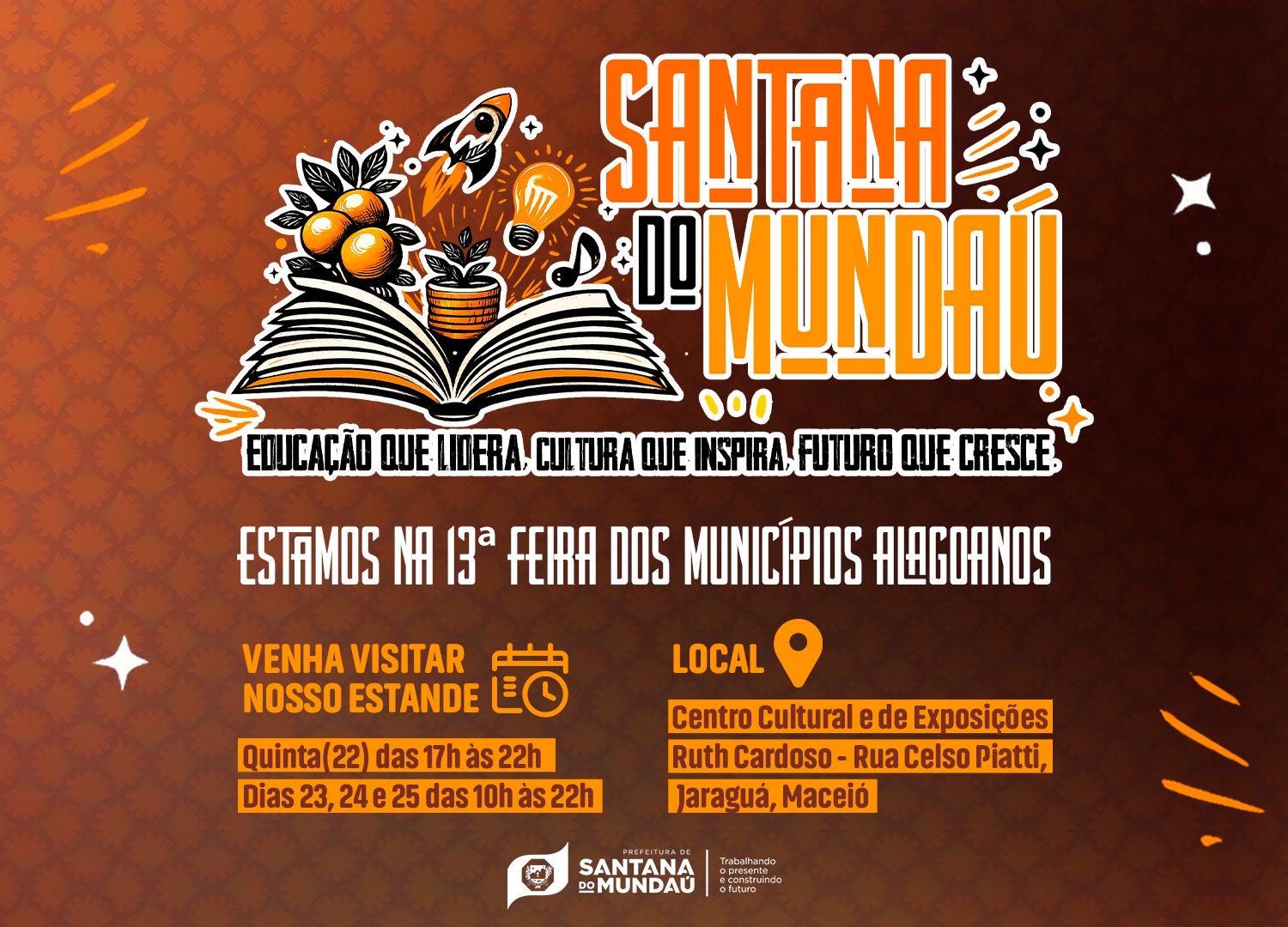 Entre os dias 22 e 25 de janeiro, o Centro de Convenções em Maceió, será palco da 13ª edição da Feira dos Municípios Alagoanos. Realizada pela AMA - Associação dos Municípios Alagoanos, a prefeitura de Santana do Mundaú também conta com um estande no local.