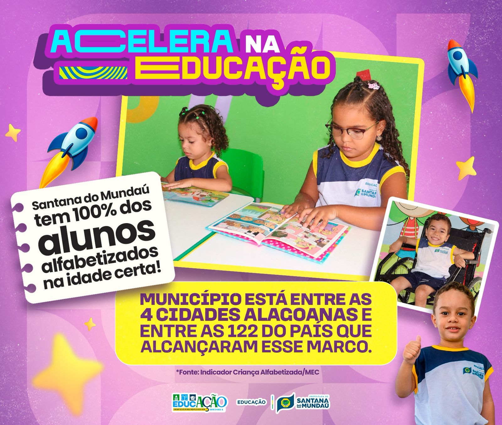 Com índices educacionais elevados e reconhecimento a nível estadual e nacional, a educação de Santana do Mundaú alcançou mais um grande marco: 100% dos alunos alfabetizados na idade certa. Os dados divulgados na última quarta-feira (1º) pelo MEC, através do Indicador Criança Alfabetizada, apresentou os resultados por município em todo o país - e apenas quatro cidades alcançaram esse feito em Alagoas.
